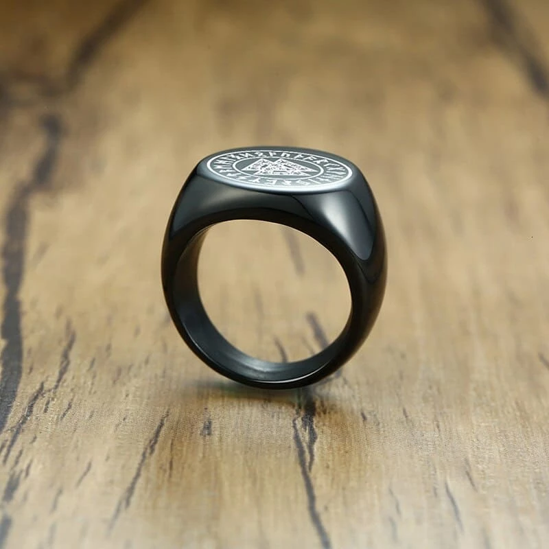 Cette bague Valknut noire a été conçue pour refléter le lien sacré qui unissait les Vikings au dieu Odin. Elle est décorée du Valknut, symbole des guerriers tombés au combat. Des runes sacrées viennent ajouter une touche scandinave supplémentaire. Le style moderne et unique de cette bague la rend adéquate pour être portée en toute occasion.
