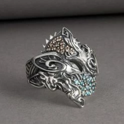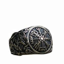 Cette bague en argent massif unique en son genre est composée du Vevgisir. Elle est également ornée de symboles scandinaves inspirés du style artistique de Mammen. Le style de Mammen est caractérisé par des motifs et des symboles abstraits entrelacés. Le tout procure à ce bijou une authenticité et une originalité indémodables.