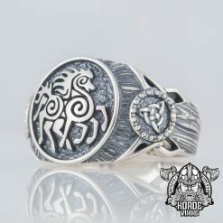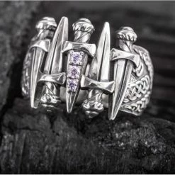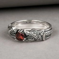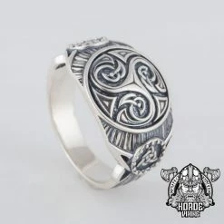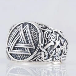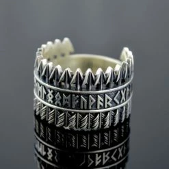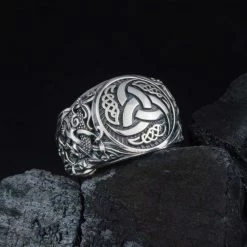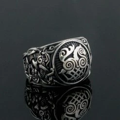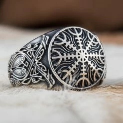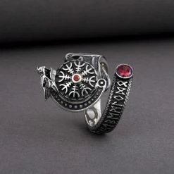 Bague En Argent Avec Symboles Aegishjalmur Et Dragons Vikings