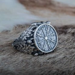 Bague Symbole Vegvisir Et Feuilles De Chêne
