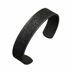 Ce bracelet en acier sombre est décoré du symbole nordique de l’arbre de vie. Le bracelet est également magnifiquement décoré de motifs nordiques illustrant des créatures mythologiques.