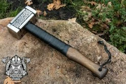 Plus qu’une simple hache, cet accessoire est un véritable chef-d’œuvre de métallurgie. En se basant sur les méthodes de la forge accumulée au fil des siècles, nos artisans sont en mesure de créer cette magnifique hache de guerre viking. Le manche en bois de frêne travaillé avec soin est gravé d’un magnifique dragon entrelacé.
